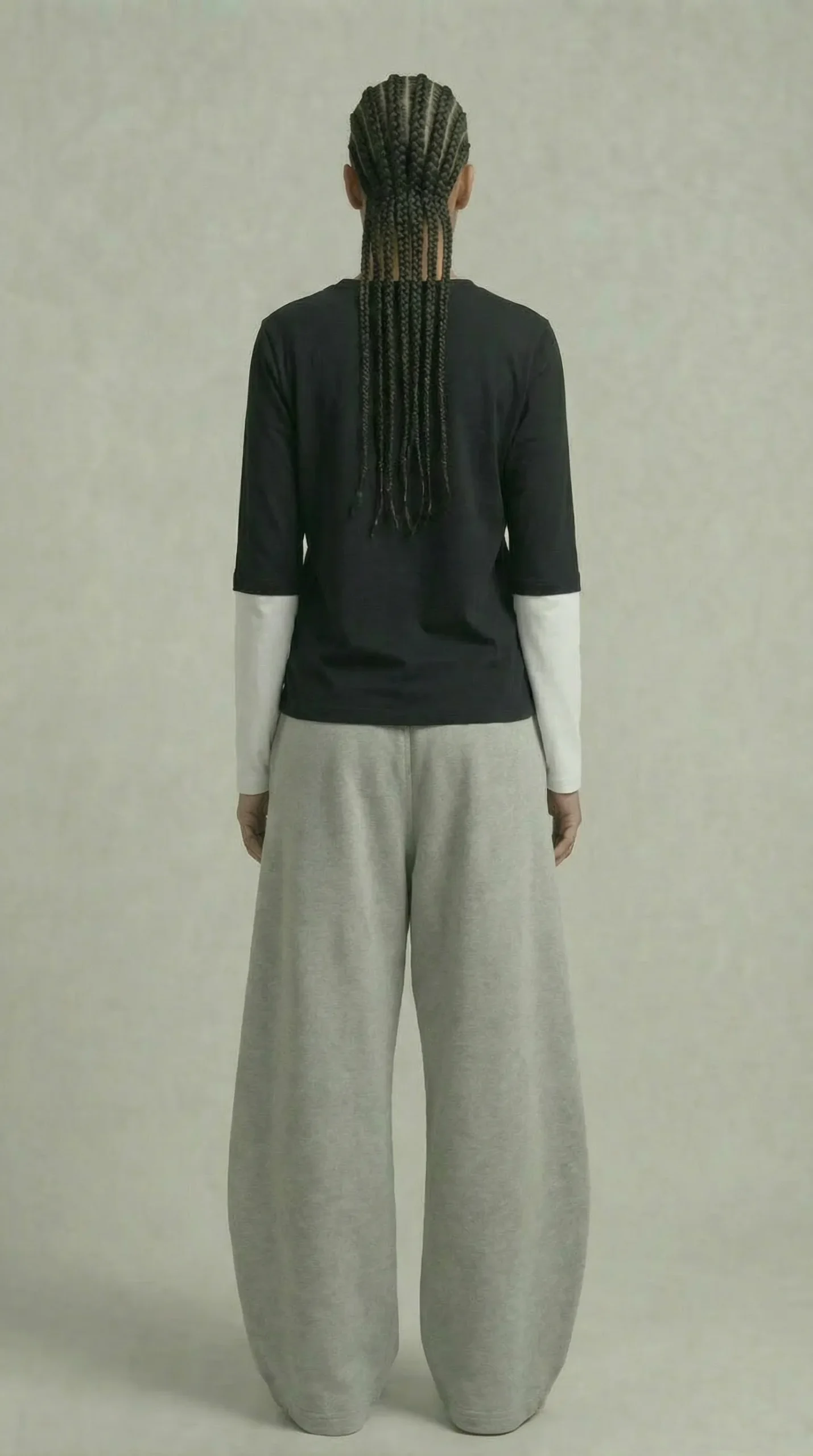 The high-contrast kit. Combining the layered white tee with our signature grey balloon sweats, this set offers the perfect balance of light and dark tones for a versatile, street-ready look.